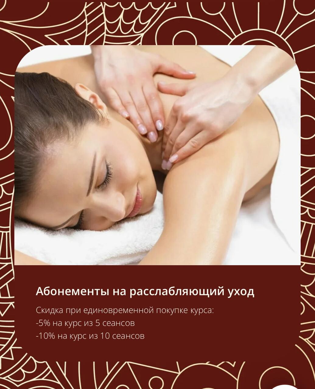 Все очень понравилось: кедровая бочка, ручной массаж с маслом, который был подарочным. Во время процедуры создали комфортные условия с теплой водичкой и музыкой. Мастер хорошо понимал мою проблему с порванными связками на правом плече и не делал массаж сильно. Я делала массаж около четырёх раз и ежемесячно прихожу за маникюром и педикюром.